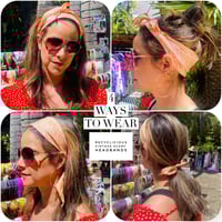 All of the scarves I use to make my headbands are pre-owned and as such on a rare occasion you will see what I like to call "vintage history", perhaps a discreet, TINY blemish. To me, this only adds to the character and history of the headband. The scarf strands will have raw edges. In time, there will be a slight fray. This is a design feature and is part of the aesthetic and will not affect the function of the headband.